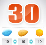 Super Pack combines three potent drugs for erectile dysfunction - Viagra 100 mg, Cialis 20 mg and Levitra 20 mg. All three are PDE5 inhibitors that boost sexual desire while improving the hardness and durability of erections for longer sexual intercourse. Super Pack contains 30 Cialis and pills and 30 Levitra pills, while the 30 Viagra pills are absolutely free for you. You get a third of your pills for free, which is an amazing money-saver.